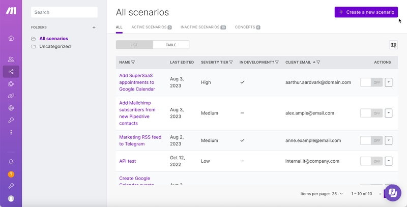 Para empezar, crea una cuenta en Make.com. Una vez que te conectes a la plataforma, serás recibido por una interfaz intuitiva donde podrás empezar a crear tu primer “script” - lo que Make llama un flujo de trabajo de automatización.